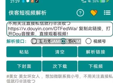 replyreload += ',' + 2320754; 【資源名稱】:俠客短影片解析 【資源版本】:3.9.6 【資源大小】:4.74mb 【測試機型】:榮耀30 【資源介紹】:目前支援各平台圖集、微信公眾號、抖音、抖音極速版、快手、快