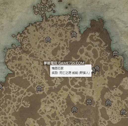 死亡之願 威能野蠻人, 攻擊狂暴狀態下獲得 [412.5 – 618.75]*825 點荊棘。在索格倫中完成 悔罪石塚以解鎖允許物品類型: 手套, 副手, 單手武器, 雙手武器 [+100%], 戒指, 護符 [+50%]