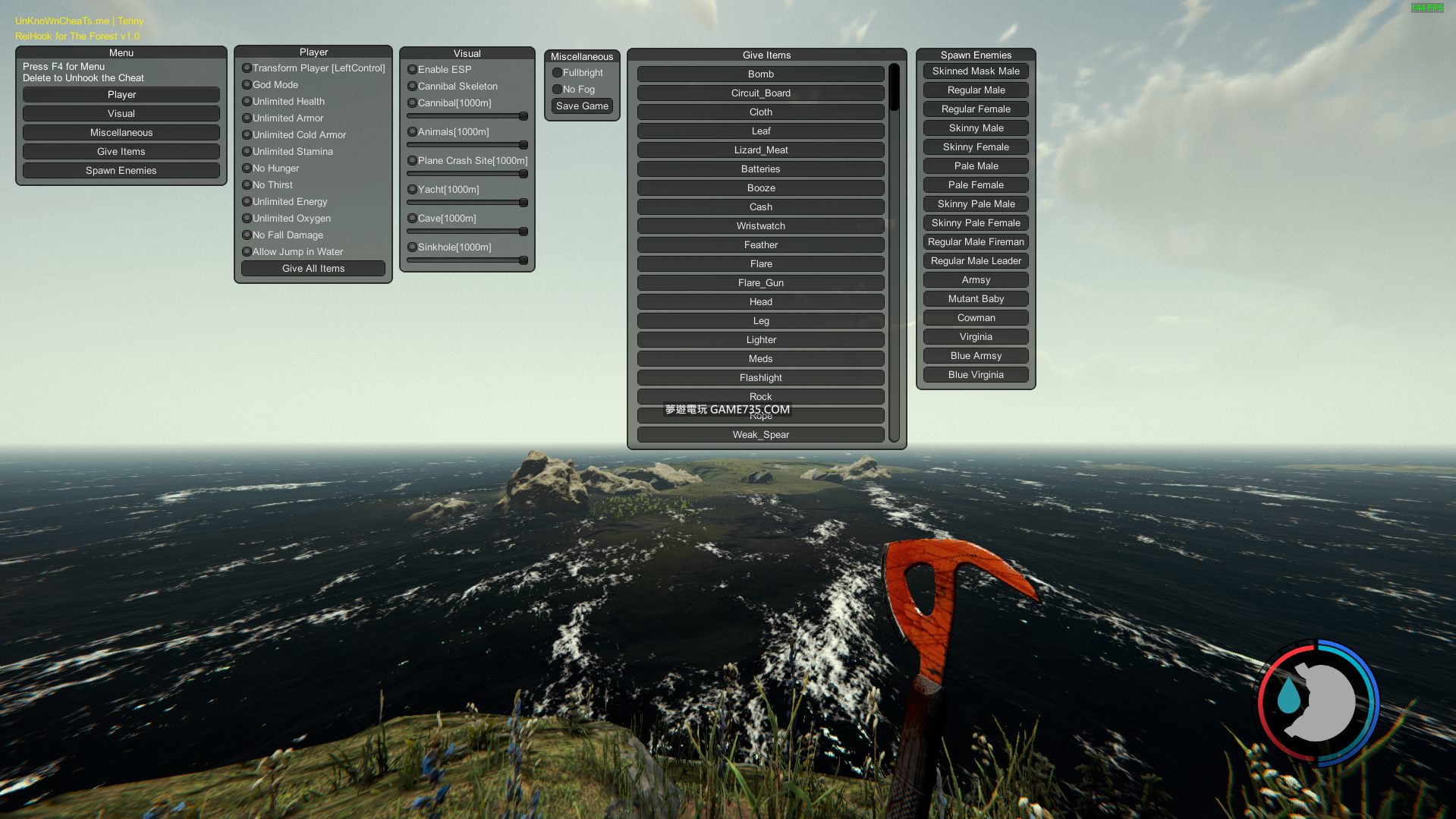 replyreload += ',' + 2321291; - 變換 [LeftControl] - 上帝模式 - 無限健康 - 無限護甲 - 無限冷甲 - 無限耐力 - 沒有飢餓 - 不渴 - 無限能量 - 無限氧氣 - 無跌落損壞 - 允許跳入水中 視覺效果: - 啟用 ESP -