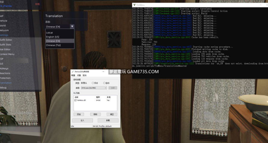 replyreload += ',' + 2321528; 打開GTA5進入故事模式、管理員運行Project-X64.exe、選擇GTA5遊戲處理程序然後選DLL檔案注入即可。 中文已經打包、放在 \AppData\Roaming\BigBaseV2\translations 所有站內附件