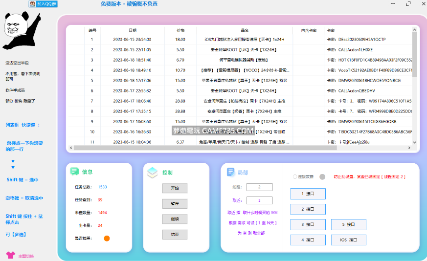replyreload += ',' + 2321635; 基於上個軟體:修復部分 卡密顯示等問題.. 最佳化 匯出功能 等等.... 增加 2 個介面 說明:自己有 資料 的也可以 拖入軟體裡面掃【 不一定非要 自帶