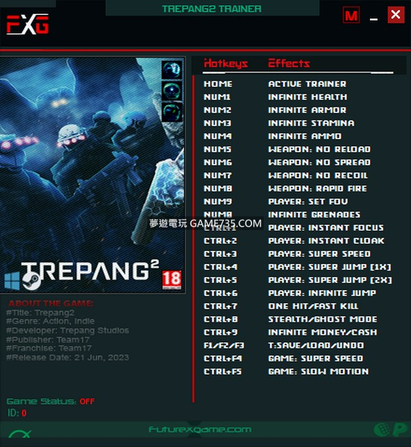 replyreload += ',' + 2322559; +22 B2168 {FUTUREX} HOME 主動訓練師 Numpad1 無限生命值 Numpad2 無限護甲 Numpad3 無限耐力 Numpad4 無限彈藥 Numpad5 武器:無需重新裝彈 Numpad6 武器:無擴散 Numpad7 武