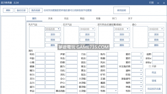 replyreload += ',' + 2322732; 2023.7.3 1、新增是否開啟遊戲中捏臉的控制開關(需刷新後起作用)。 2、完善壺妖修改功能。 3、修復因某些MOD導致無法精準獲取冥妖和壺妖的問題 2023.6.20 1、屬性面板新增復活按