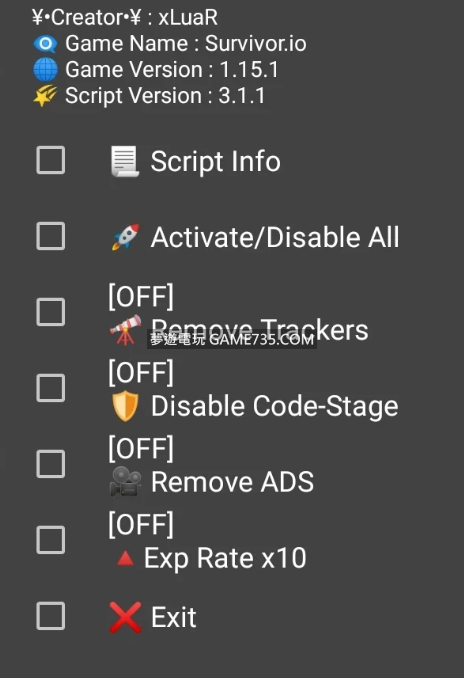 replyreload += ',' + 2322823; 關於此文件 特徵 : - 上帝模式。 (暫時刪除) - 移除廣告。 - 無技能+武器CD。 (暫時刪除) - 經驗值x10。 - 高傷害。 (暫時刪除) - 磁鐵。 (暫時