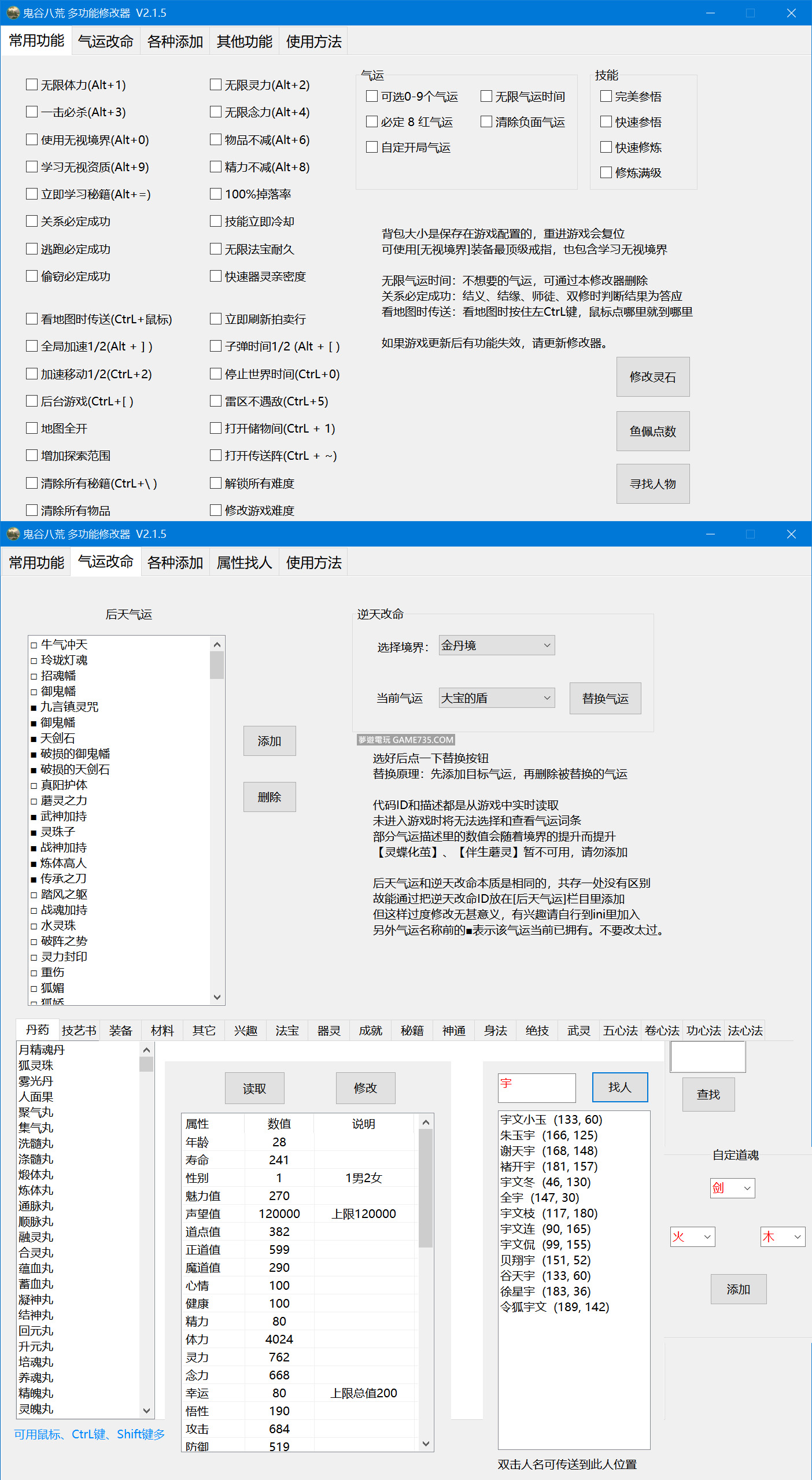 正文摘要:replyreload += ',' + 2322832;應廣大玩家要求製作,所有功能都是免費 支援版本:Steam上的最新版本遊戲,失效時請更新修改器 2023/06/24 V2.5.4.1:更新支援2023/06/21日遊戲版本 修改器功能: 無限體力 無限靈力 一擊必殺 無限念力 使用無視境界 物品不減 學習無視資質 精力不減 立即學習秘籍 完美感悟 關係必定成功 快速感悟 技能立即冷卻 快速修煉 逃跑必定成功 100%掉落率 偷竊必定成功 快速器靈親密度 修煉一次滿級 清空儲物空間 子彈時間 全域加速 加速移動 停止世界時間 後台遊戲 打開儲物間 雷區不遇敵 打開傳送陣 清除所有秘籍 解鎖所有難度 清除所有物品 修改遊戲難度 增加探索範圍 看地圖時傳送 地圖全開 立即刷新拍賣行 增加視距上限 無限法寶耐久 快速道心堅定度 外人也可進入 立即修復昊天眼, 開局可選昊天眼 昊天眼總能突破 神器改為昊天眼 青鱗池總能升級 100%收妖率 無限壺妖契約數量 修改金錢 雙魚玉珮點數 可選9個先天氣運 自定先天氣運 開局全紅氣運 無限氣運時間 清除負面氣運 後天氣運和逆天改命:新增/刪除 後天氣運、修改、替換逆天改命、更換道心。 各種新增窗口:丹藥、技藝書籍、裝備坐騎戒指、材料、興趣、道號,新增所有秘籍、功法、技能、神通、身法、絕技、靈技、心法。 新增昊天眼妖獸技能,自訂刪除器靈,器靈天賦全開,紅色功法品質,自訂功法子類型。新增傳承詞條,壺妖 人物屬性窗口:修改 年齡、壽命、魅力、聲望、道點、正道值、魔道值、心情、健康、精力、體力、靈力、念力、幸運、悟性 道力、攻擊、防禦、腳力、功法抗性、靈根抗性、會心、護心、移速、暴擊倍數、抗暴倍數、畫符、藥材、礦材 刀法、槍法、劍法、拳法、掌法、指法、火靈根、水靈根、雷靈根、風靈根、土靈根、木靈根、煉丹、煉器、風水 其他功能窗口:尋找人物位置並傳送,移魂NPC,自訂親密度,修改性格,自訂道魂屬性,修改宗門資源,累計宗門貢獻,神魂技能,青鱗池功效 所有站內附件皆會附上安全掃描報告請會員查看純淨度百分比後判斷使用(adsbygoogle = window.adsbygoogle || []).push({});相關檔案須知:取得檔案前,請先詳細閱讀文章內容避免不必要錯誤與誤會發生。也可多參考文章討論樓層內容了解附件檔案相關討論資訊。 【此文章部分內容隱藏中】 解除隱藏說明教學點擊下方 繼續閱讀文章 後請仔細觀看文章內容 並依照指示進行下一步最後完成解除隱藏後系統會回到此文章自動顯示隱藏內容~繼續閱讀 replyreload += ',' + 2322832; |