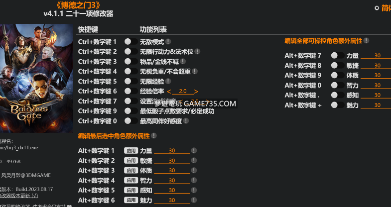 replyreload += ',' + 2325627; 基本功能: 點選簡體、繁體、English,可以切換語言 (切換語言後修改器將把該語言設定為默認語言) 按Ctrl+Shift+Home,可以關閉快速鍵檢測,避免誤按快速鍵以及與遊戲按鍵重複的情