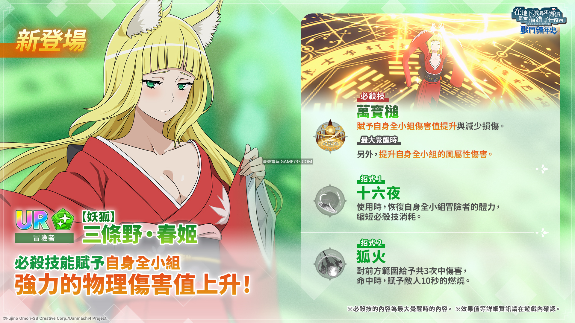 replyreload += ',' + 2326850;春姬是一位優秀的UR角色,在《地城邂逅 戰鬥編年史》中擁有多項特殊技能,以下是她的優點和技能分析: 優點: 恢復能力突出: 春姬擁有技能1,可以恢復所有友軍的生命值,並減