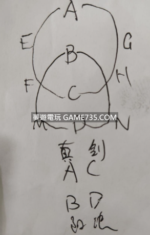 機關思路 在解謎過程中,唯一的難點就在於轉圈這個步驟。 玩家需要將真劍位於一個圓直徑上,同時陽法要在另一個圓直徑上。 多次嘗試轉圈,直到成功通過為止。