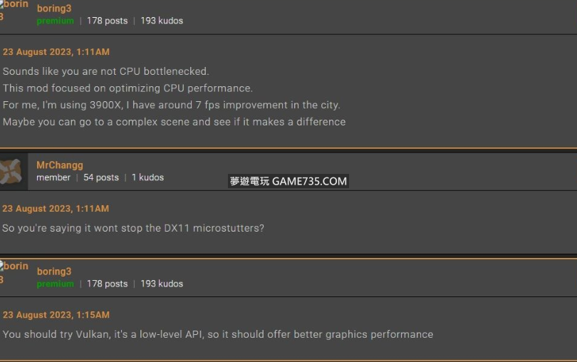 正文摘要:replyreload += ',' + 2327438;Mod功能介紹 這個輕量級Mod會自動將您的遊戲處理程序優先順序設定為高優先順序。 較高的優先順序可確保遊戲始終佔用大部分 CPU 使用率,並防止其他處理程序造成的卡頓。 個人測試特效全最高提升不大,相同地點相同鏡頭角度。提升1-2幀。。。用mod前80-81幀,用Mod後穩定82偶爾跳83幀 電腦組態各有不同 感興趣的可以試試。也許有人用了甚至會出現負最佳化 N網網友說他用這個提升了7幀 或許對CPU有瓶頸的會有點用 安裝 首先需要安裝前置 Native Mod Loader。【原生MOD載入器】 《博德之門3》Native Mod Loader【原生MOD載入器】鏡頭調整解鎖、WASD操控【功能性MOD必要前置】 - 9月6日正常 https://www.game735.com/thread-380477-1-1.html 然後將1號壓縮包內Bin資料夾解壓到遊戲目錄“Baldurs Gate 3\”內 這樣就好了 可選包裡兩個登錄檔 用登錄檔就可以不用1號包主檔案 如果你想用一種不那麼麻煩的方式。您還可以通過編輯登錄檔來提高CPU優先順序。 這不會導致資料不匹配警告。 連按兩下使用安裝登錄檔install.reg ---- 點選是。此後進遊戲默認CPU高優先順序 你可以連按兩下登錄檔“uninstall.reg”來撤消更改。點選是,則撤銷優先順序 所有站內附件皆會附上安全掃描報告請會員查看純淨度百分比後判斷使用(adsbygoogle = window.adsbygoogle || []).push({});相關檔案須知:取得檔案前,請先詳細閱讀文章內容避免不必要錯誤與誤會發生。也可多參考文章討論樓層內容了解附件檔案相關討論資訊。 【此文章部分內容隱藏中】 解除隱藏說明教學點擊下方 繼續閱讀文章 後請仔細觀看文章內容 並依照指示進行下一步最後完成解除隱藏後系統會回到此文章自動顯示隱藏內容~繼續閱讀 replyreload += ',' + 2327438; |