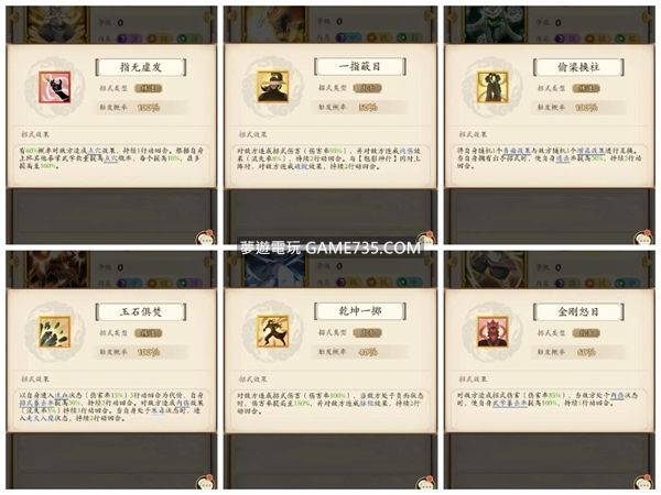 **外功技能組合:** 1. 天竺點穴指 2. 壹指禪 3. 亂花百變手 4. 七絕拳 5. 乾坤八卦拳 6. 大力金剛拳 **推薦理由:** - 這三種輕功技能皆強調防禦能力,幫助你在對手內力耗盡時維持優勢。