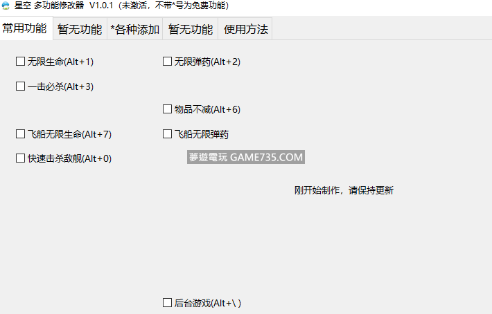 replyreload += ',' + 2327658; 多功能修改器v1.0.1使用說明: 無限生命(Alt+1):這個功能將讓你的遊戲角色擁有無限生命,不再需要擔心死亡,可以更輕鬆地探索宇宙。 無限彈藥(Alt+2):不必再擔心彈藥用盡,這