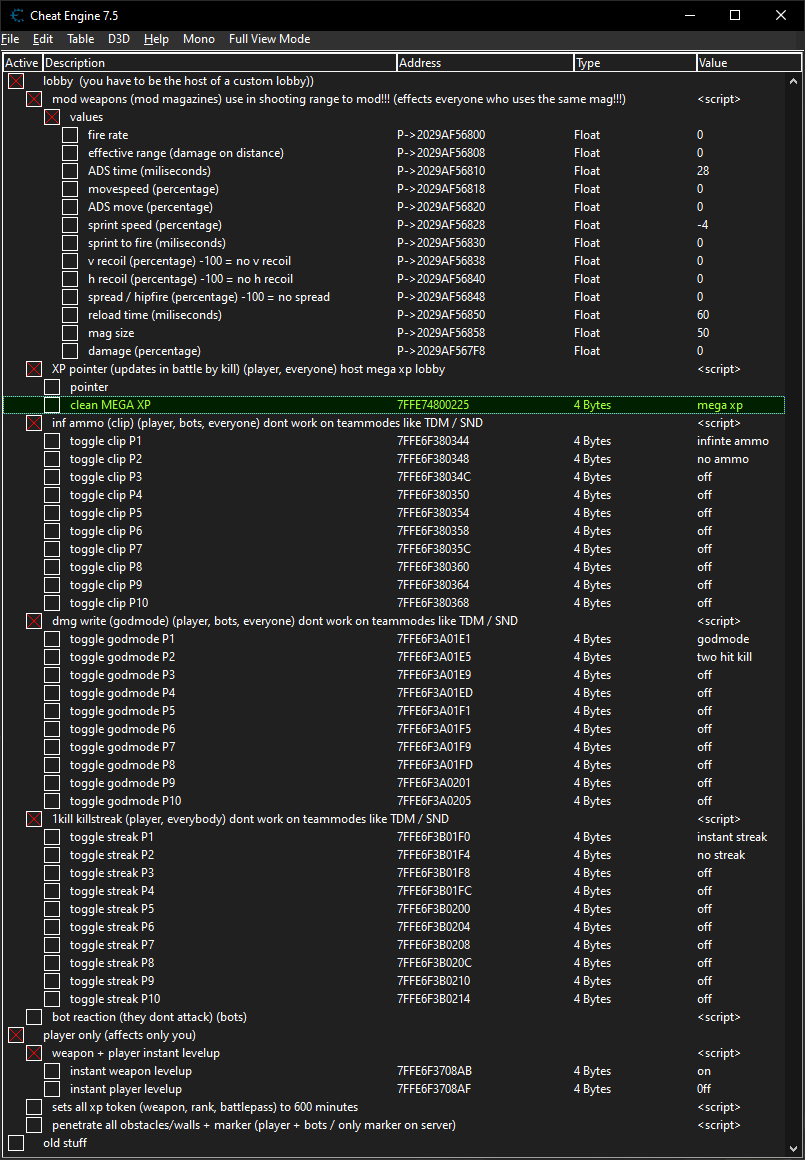 replyreload += ',' + 2328389;修復了當前遊戲更新 0.11.38 的所有內容 新增了一些額外的切換選項 將客戶端資訊彈藥(不再存在於遊戲代碼中)更改為基於大廳 保留“舊的東西”部分用於偏移和參考 這樣如果其他遊戲更新出