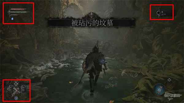 墮落之王2|被玷汙的墳墓攻略正式進入遊戲後沿著臺階直走向前直走就行。這裏先給大家簡單介紹一下界面,其中右下角為提燈和遠程武器欄,通過十字鍵上可以進行切換,後續教程中會有詳細的使用方法就不在這裏贅述了。左
