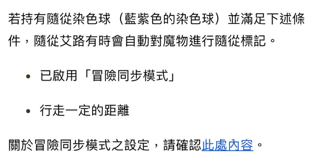 replyreload += ',' + 2330057; **隨從標記是什麼?** 在魔物獵人NOW中,隨從標記是一種特殊的功能,當你持有隨從染色球(藍紫色的染色球)並且滿足特定條件時,你的隨從艾路可能會自動對魔物進行標記,使你可以