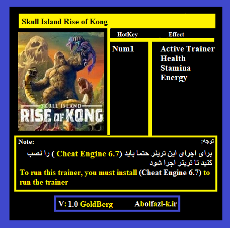 replyreload += ',' + 2330496; Skull Island: Rise of Kong 作弊修改輔助 V1.0 要運行此訓練器,您必須安裝(Cheat Engine 6.7) 運行訓練器 所有站內附件皆會附上安全掃描報告請會員查看純淨度百分比後判斷
