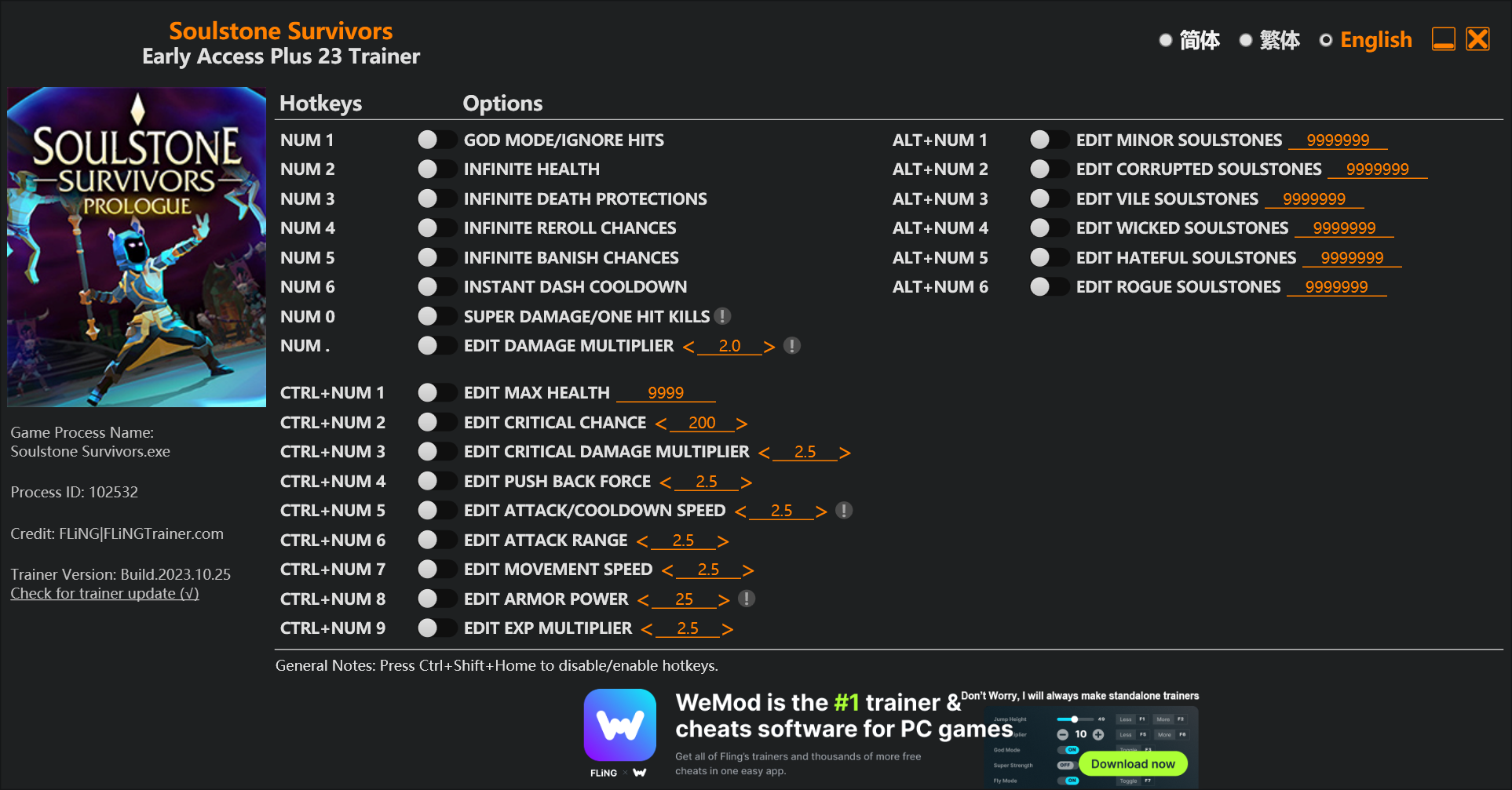 replyreload += ',' + 2330867; 選項 數字鍵 1 – 上帝模式/忽略命中 數字鍵 2 – 無限生命值 數字鍵 3 - 無限死亡保護 數字鍵 4 – 無限重擲機會 數字鍵 5 - 無限放逐機會 數字鍵 6 - 即時衝刺冷卻 數字鍵 0 –