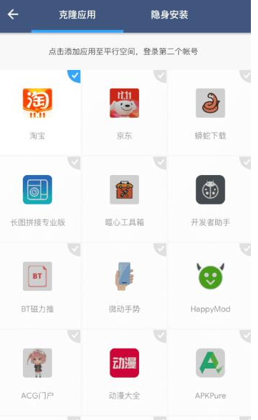 replyreload += ',' + 2330929; 功能 平行空間是一款極簡、Free的黑科技雙開助手; 您可以在平行空間雙開微信(微博、陌陌、映客、yy)等應用,讓你在一部手機上擁有兩個帳號; 用平行空間可以同時雙開兩個遊戲帳