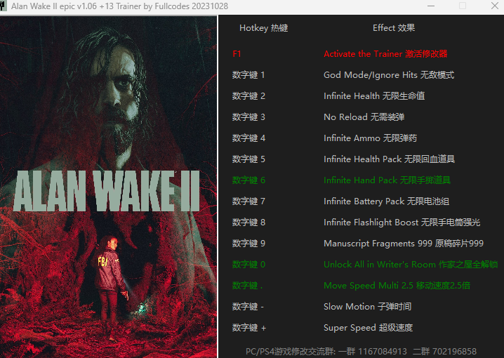 replyreload += ',' + 2331084; 1. 確認遊戲版本 Alan Wake 2 心靈殺手 2 epic正版或rune版本,對應exe:AlanWake2.exe version: Ver.1.06 2. 如何使用修改器 (1)下載epic遊戲或rune版本,離線運行,事先關閉36