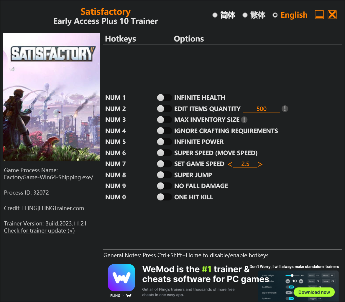 replyreload += ',' + 2333201; 10 個選項 · 遊戲版本:搶先體驗 · 最後更新:2023.11.21 令人滿意的訓練家/作弊選項 數字 1 – 無限生命值 數字鍵 2 – 編輯物品數量 數字鍵 3 – 最大庫存大小 數字鍵 4 –