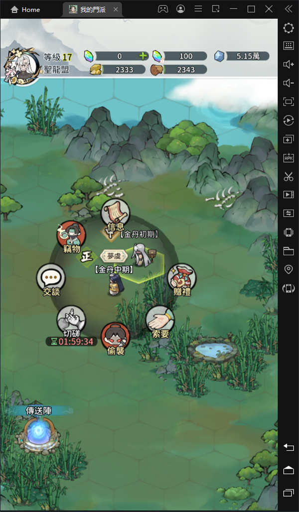 我的門派 6. 找人切磋指教 當你的實力變得足夠強大時,記得回頭找尋前面地圖上的NPC。每兩小時可以進行一次切磋論道,並且勝利後可以隨機獲得他們身上的一個道具,這些道具可能包括優秀的器胚或法寶