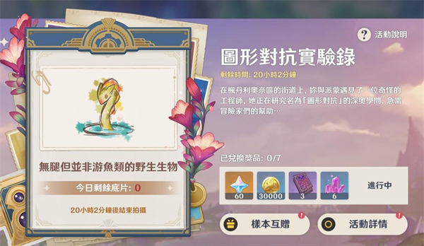 《原神|圖形對抗實驗錄第六天攻略》 在原神的圖形對抗實驗錄中,第六天的任務是拍攝無腿但非遊魚的野生生物。這個任務可能會讓一些玩家感到困惑,但我們將在這篇文章中提供詳細的攻略,以幫助你完成這個任務。 首
