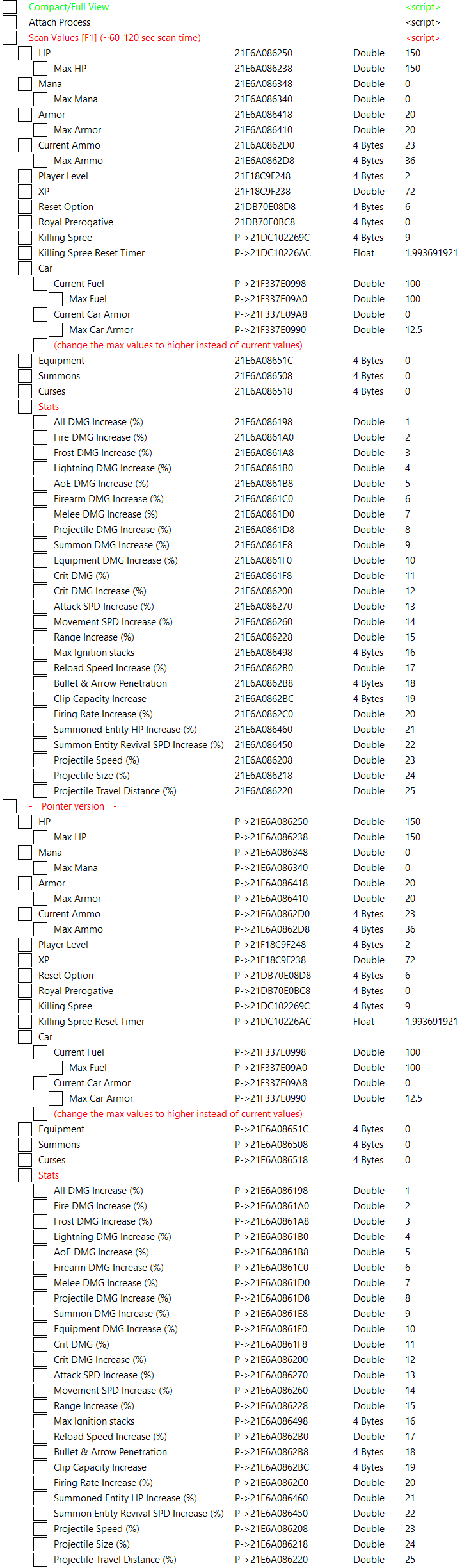 replyreload += ',' + 2334267; CE腳本 表 v3 -添加了汽車燃料和裝甲指針 -修復了一些指針 所有站內附件皆會附上安全掃描報告請會員查看純淨度百分比後判斷使用(adsbygoogle = window.adsbygoogle || []).pu
