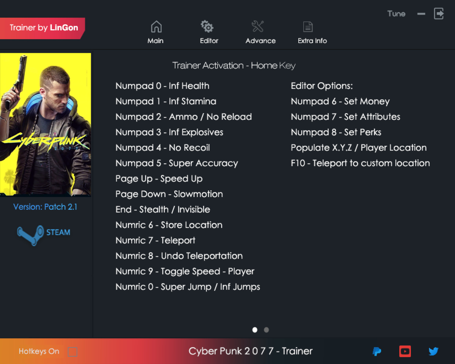 replyreload += ',' + 2334824; 選項: 訓練器啟動 - 主頁鍵 小鍵盤 0 - 無限健康 小鍵盤 1 - 無限耐力 小鍵盤 2 - 彈藥/無需重新裝填 數字鍵 3 - 無限炸藥 數字鍵 4 - 無後座力 數字鍵 5 - 超精確 數字