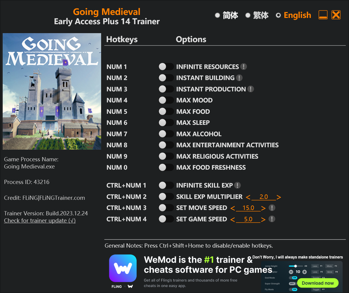 replyreload += ',' + 2335811;14 選項 · 遊戲版本:搶先體驗 · 最後更新:2023.12.24 選項 數字 1 – 無限資源 數字鍵 2 – 即時建造 數字 3 – 即時生產 數字鍵 4 - 最高情緒 數字鍵 5 - 最大食物量 數字鍵
