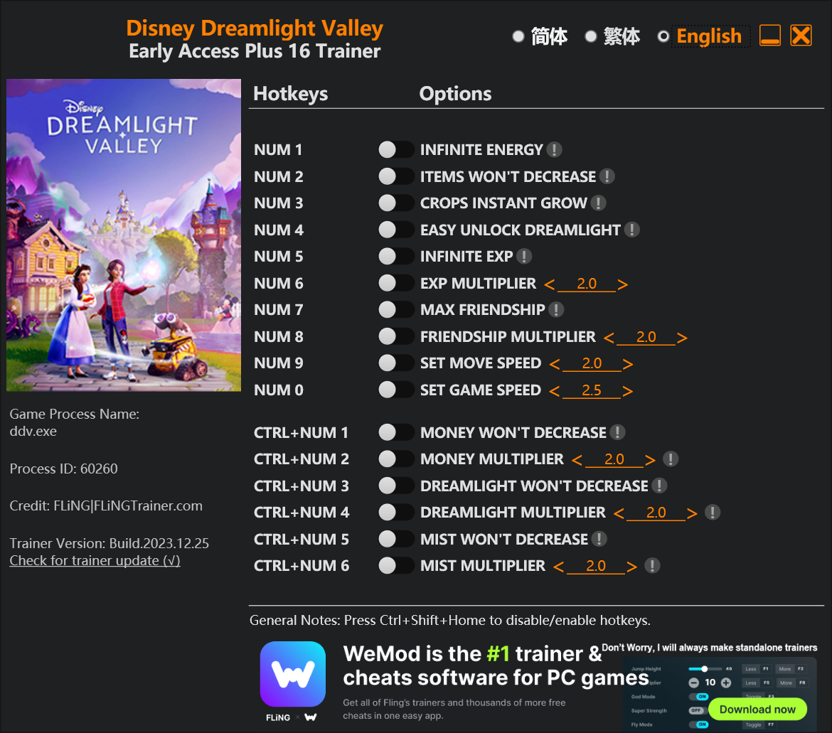 replyreload += ',' + 2335822;16 選項 · 遊戲版本:搶先體驗 · 最後更新:2023.12.25 迪士尼夢光谷訓練師/作弊選項 數字 1 - 無限能量 數字鍵 2 – 物品不會減少 數字鍵 3 – 農作物即時生長 數字鍵 4 – 輕鬆