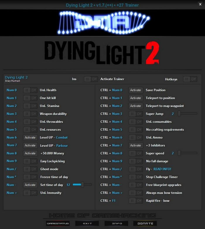 replyreload += ',' + 2336174; 在主選單或遊戲暫停時插入啟動訓練器 編號 0 Unl。 健康 Num 1 一擊必殺 編號 2 Unl。 耐力 Num 3 武器耐久度 編號 4 Unl。 投擲物 編號 5 Unl。 資源 數字鍵 6 升級 - 戰