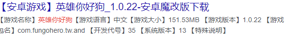 replyreload += ',' + 2336188;【遊戲名稱】英雄你好狗 【遊戲語言】中文 【遊戲大小】151.53MB 【遊戲版本】1.0.22 【開發代號】35 【系統版本】13 【特殊說明】遊戲戰鬥介面螢幕右邊往下解鎖Debug(GM按鈕)
