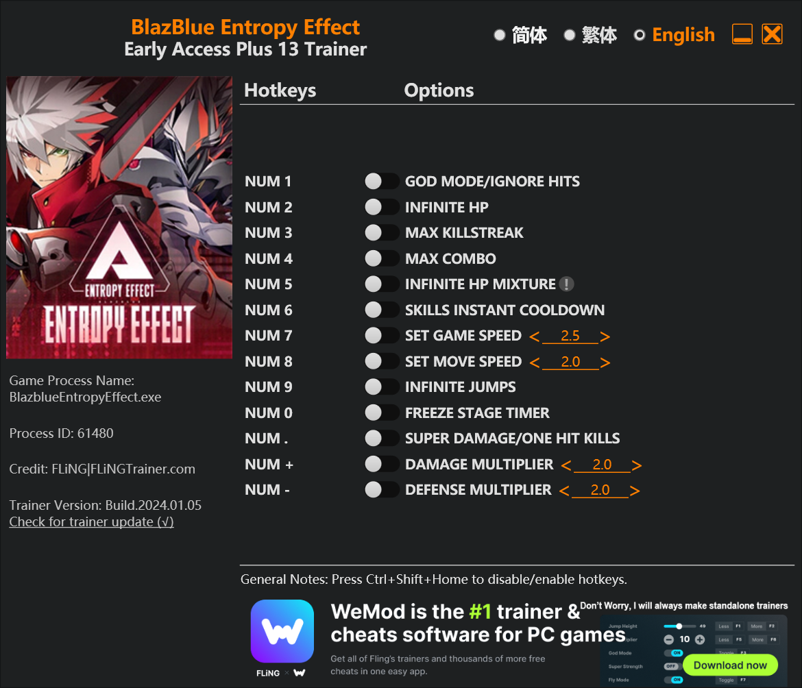 replyreload += ',' + 2336778; 選項 數字鍵 1 – 上帝模式/忽略命中 數字鍵 2 - 無限 HP 數字鍵 3 – 最大連殺數 數字鍵 4 – 最大連擊數 數字鍵 5 - 無限 HP 混合物 數字鍵 6 - 技能即時冷卻 數字鍵 7 – 設定