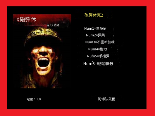 replyreload += ',' + 2337034;砲彈震撼 2:血跡 《砲彈休 克 2》血跡 砲彈休克2 Num1=生命值 Num2=彈藥 Num3=不重新加載 Num4=耐力 Num5=手榴彈 所有站內附件皆會附上安全掃描報告請會員查看純淨度百分比