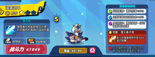 **1. 強襲雞甲(Rank 5)** - 強襲雞甲的攻擊是一道光束炮,對敵人的y軸位置造成傷害。 - 升級到傳說等級後,配合超載裝備能夠造成高傷害。 - 清怪能力出色,適合前期使用