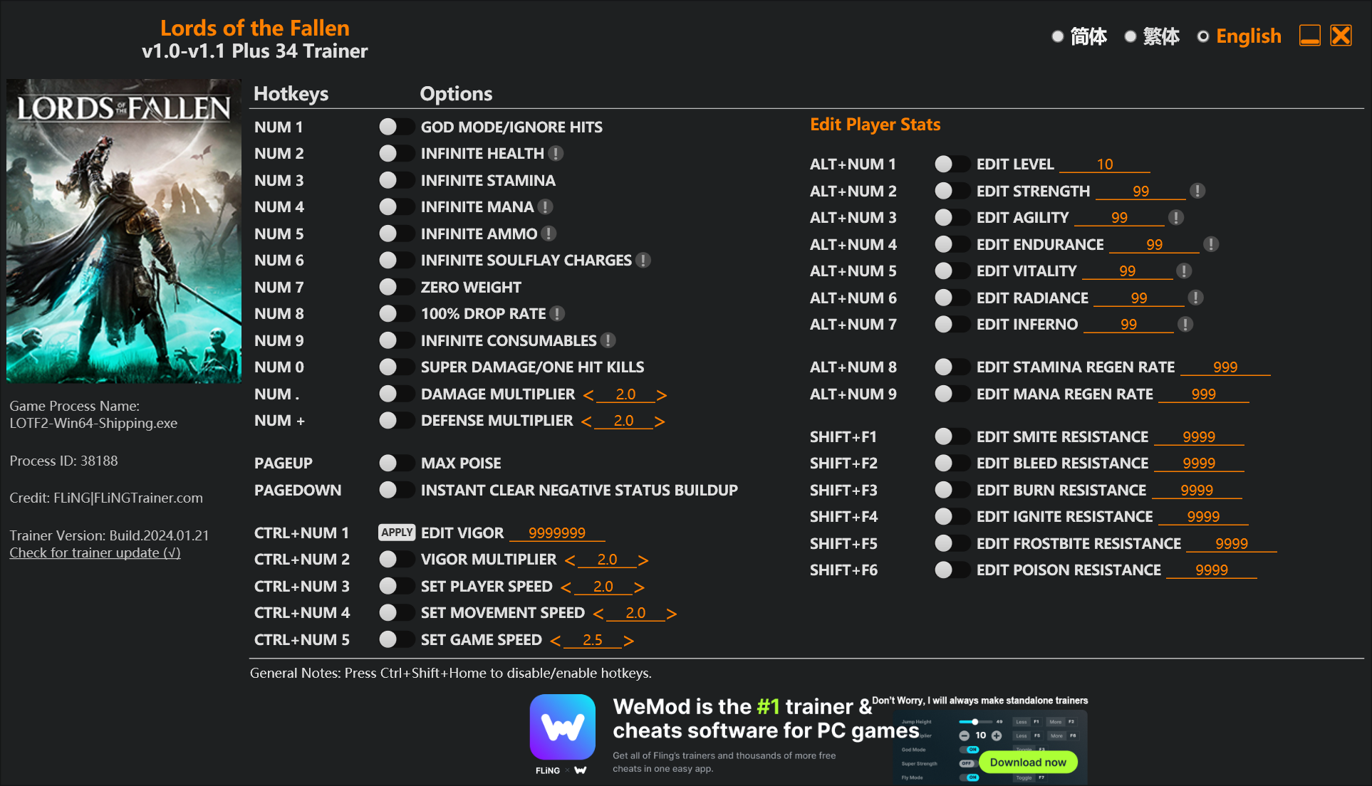replyreload += ',' + 2337818;34個選項·遊戲版本:v1.0-v1.1+·最後更新:2024.01.21 數字鍵 1 – 上帝模式/忽略命中 數字鍵 2 – 無限生命值 數字鍵 3 - 無限耐力 數字鍵 4 - 無限法力 數字鍵 5 - 無限彈藥