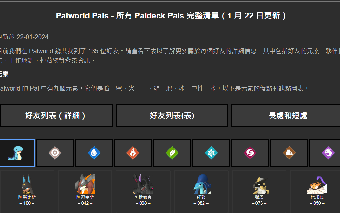 《幻獸帕魯》是一款網絡遊戲,該遊戲提供了一個方便查看的幻獸列表,讓玩家能夠更容易地瞭解遊戲中的不同幻獸種類和詳細資訊。 這個列表可以在以下網站上找到:https://genshinlab.com/palworld-pals/。 在這