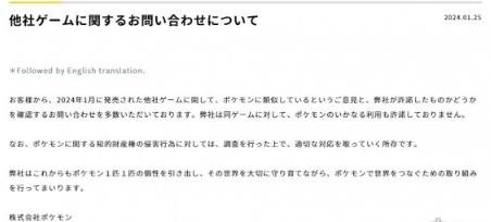 寶可夢公司針對《幻獸帕魯》發布公告:會對侵權行為展開調查 近期,《幻獸帕魯》這款被戲稱為縫合怪的遊戲上線後,立即掀起了轟動。而在今日,寶可夢公司在其官方網站上發布了一則引人矚目的公告,宣稱將對侵犯《寶