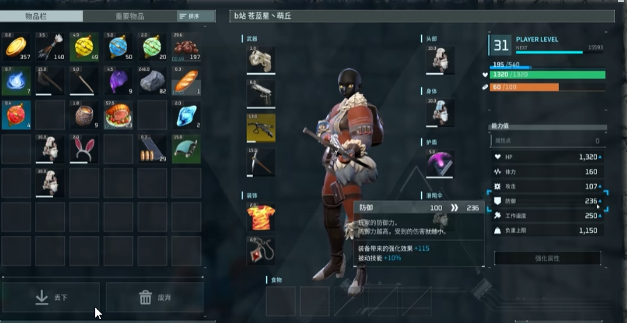 3. **Bug操作步驟** - 將額外的護甲裝備放入你的背包中,這將增加你的裝備數量。 - 將一個高級滑翔傘拖到你的角色身上,你將看到毛皮護甲出現在滑翔傘上,這會增加你的防禦。