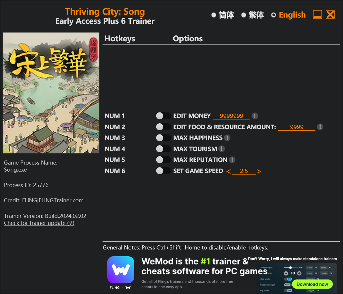 replyreload += ',' + 2339000; 選項 數字 1 – 編輯金錢 數字鍵 2 – 編輯食物和資源數量: 數字鍵 3 – 最大幸福感 數字鍵 4 – 最大旅遊 數字鍵 5 - 最高聲望 數字鍵 6 – 設定遊戲速度 所有站內附件皆會附