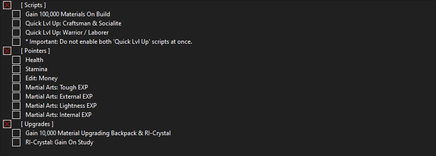 replyreload += ',' + 2339505; [腳本] 建造時獲得 100,000 種材料 快速升級:工匠和社交名流 快速升級:戰士和勞工 [指針] 健康 耐力 編輯:錢 武術:艱難的經驗 武術:外部經驗 武術:輕盈 EXP 武術:內部經驗