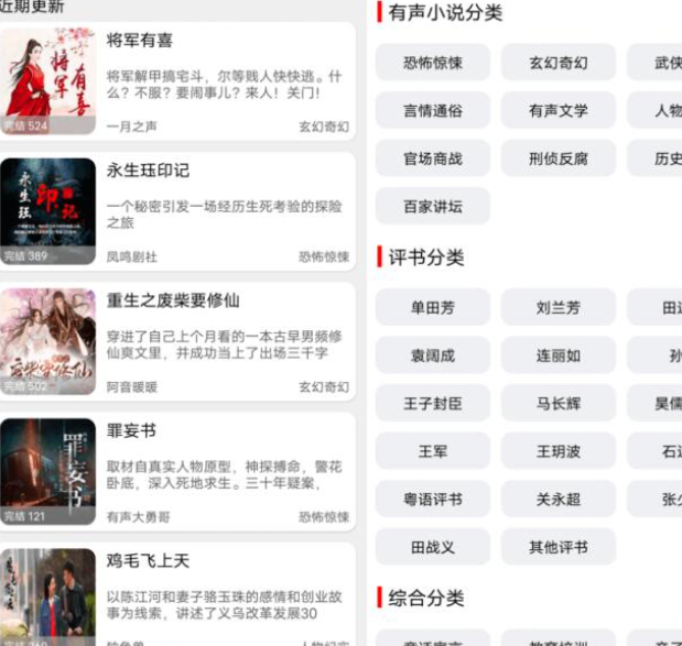replyreload += ',' + 2341417; 提供了最新、連載、推薦、熱門等排行榜供你選擇,也可以點選搜尋框,輸入自己喜歡的小說 朗讀版、廣播劇版、評書版任你選擇 部分有聲作品提供文字同步閱讀,邊聽邊看 囊括小說、武