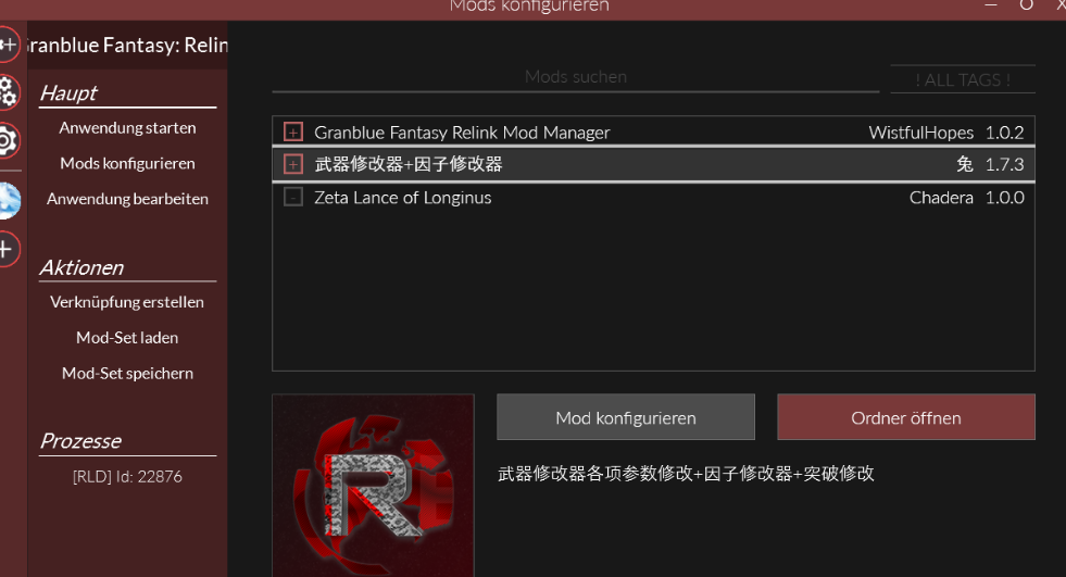replyreload += ',' + 2341740;如果不使用修改器,這個MOD打上和不打是效果一樣的,不會對遊戲有任何影響。使用Reloaded-II注入 這個是因子修改器,只要裡面一個exe複製到 .....\Release\Mods\gbfrelink.Weapon mo
