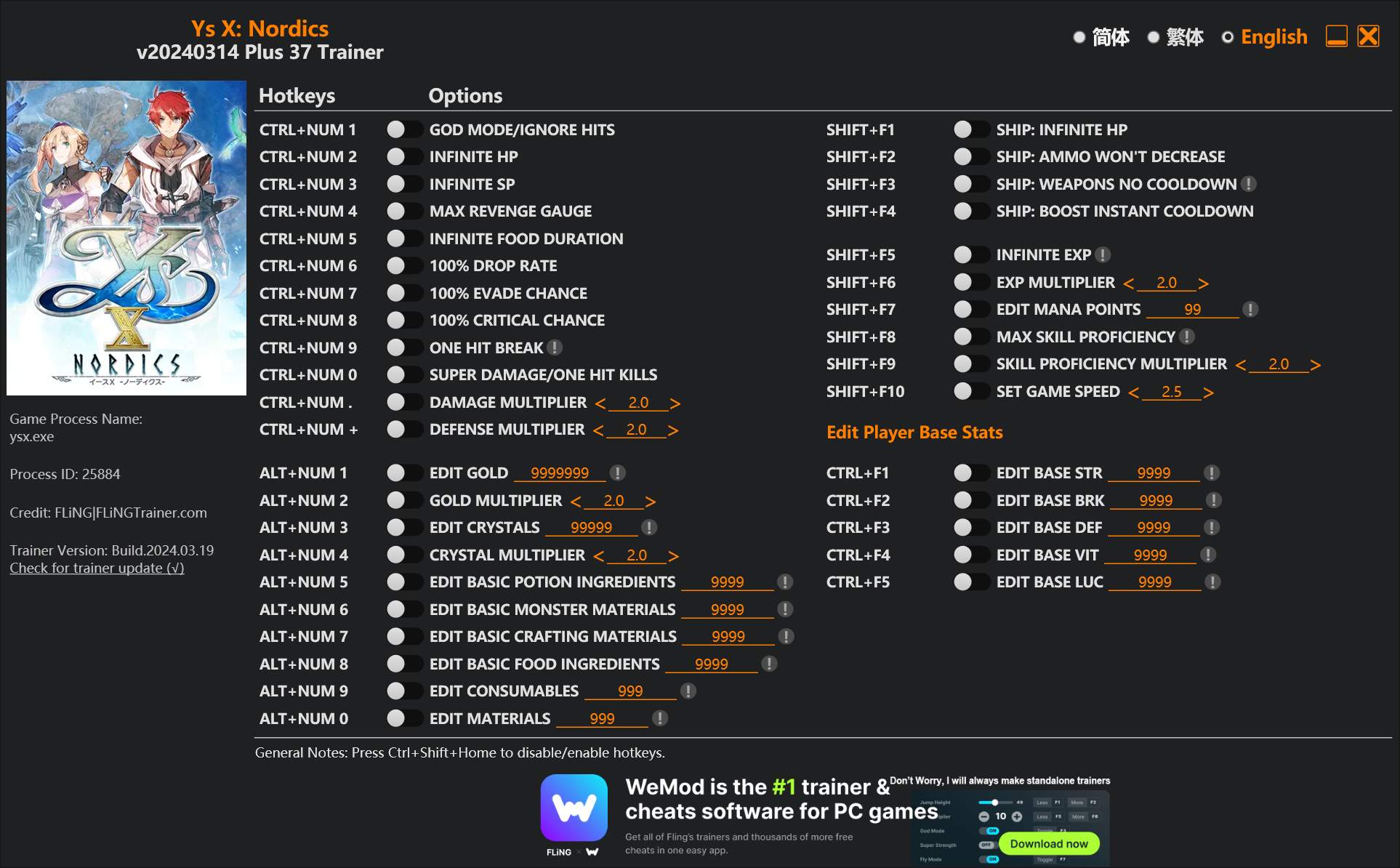 replyreload += ',' + 2342197;37 選項 · 遊戲版本:v20240314+ · 最後更新:2024.03.19Ys X: Nordics Trainer/Cheat 選項 Ctrl+數字鍵 1 – 上帝模式/忽略命中 Ctrl+數字鍵 2 – 無限生命值 Ctrl+數字鍵 3 -