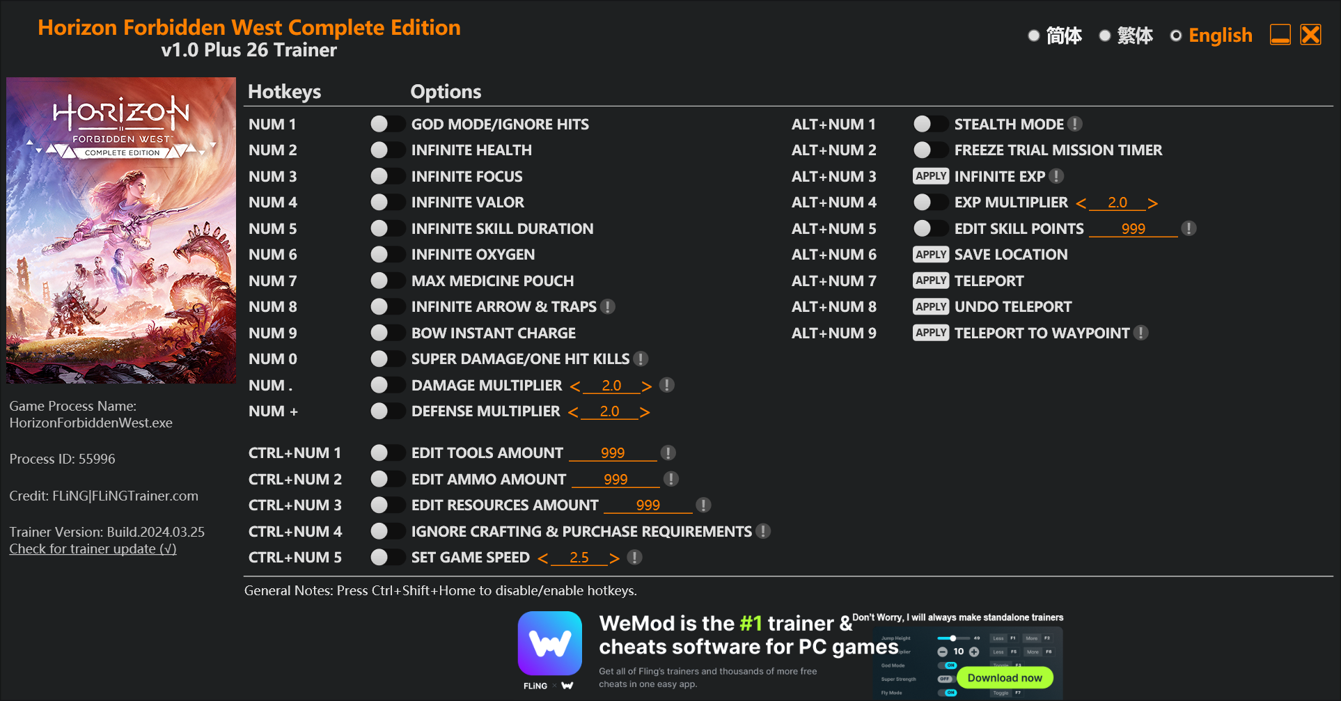 replyreload += ',' + 2342615;26個選項·遊戲版本:v1.0+·最後更新:2024.03.25 數字鍵 1 – 上帝模式/忽略命中 數字鍵 2 – 無限生命值 數字鍵 3 - 無限專注 數字鍵 4 - 無限勇氣 數字鍵 5 - 無限技能持續時