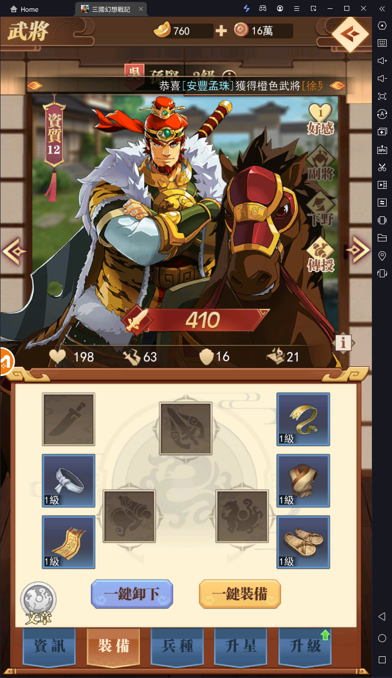 《三國幻想戰記》裝備詳解:裝備等級、品階、屬性和強化 在《三國幻想戰記》中,裝備扮演著極其重要的角色,決定了角色的戰鬥能力和擁有的技能。以下將詳細解釋裝備的各個方面。 ### 裝備等級 ### 裝備須知 裝