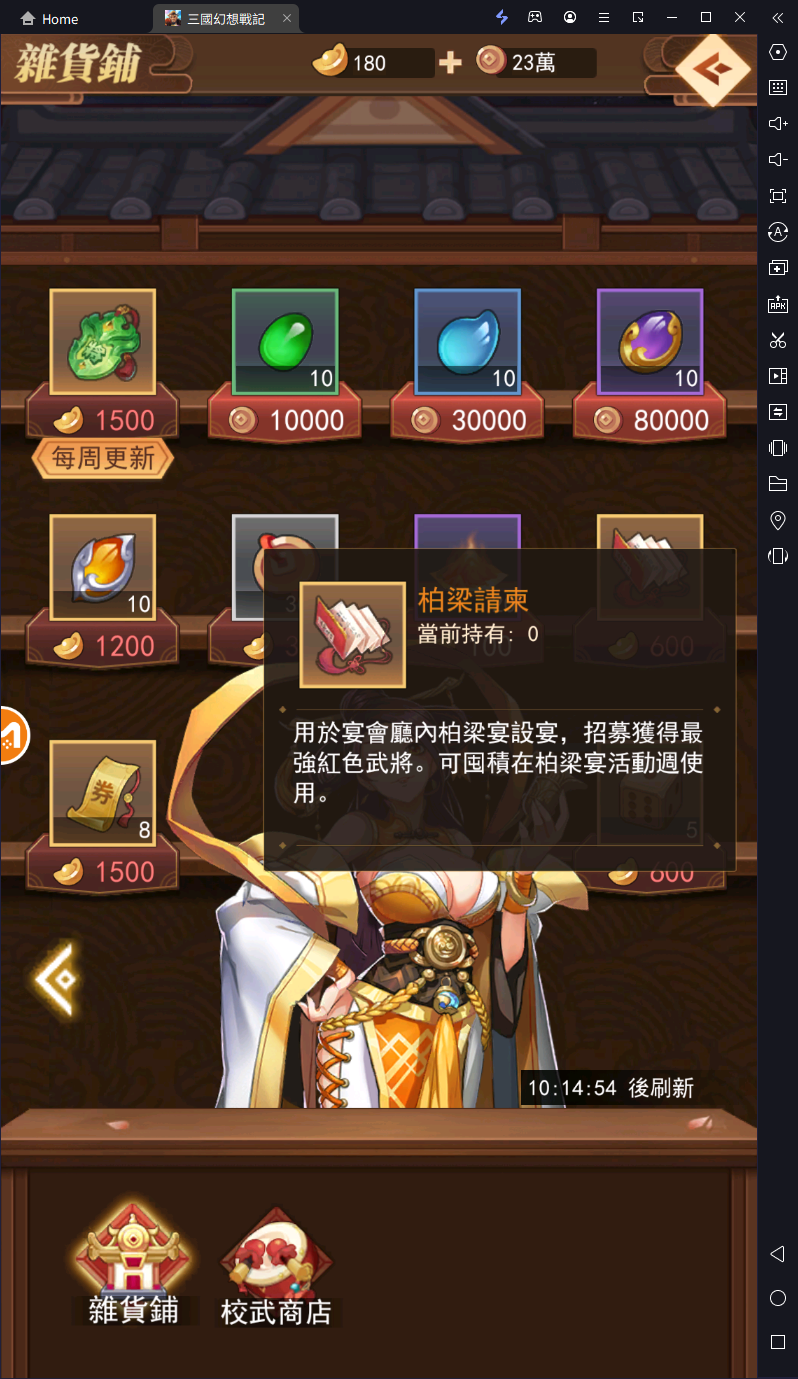 《三國幻想戰記》紅將活動週招募|積分指南|柏梁宴 在《三國幻想戰記》中,紅將活動週是遊戲中定期輪換的活動之一,每週持續七天。這個活動允許玩家以消耗「柏梁邀請函」的方式來抽取指定的紅色名將,或者以1500元寶