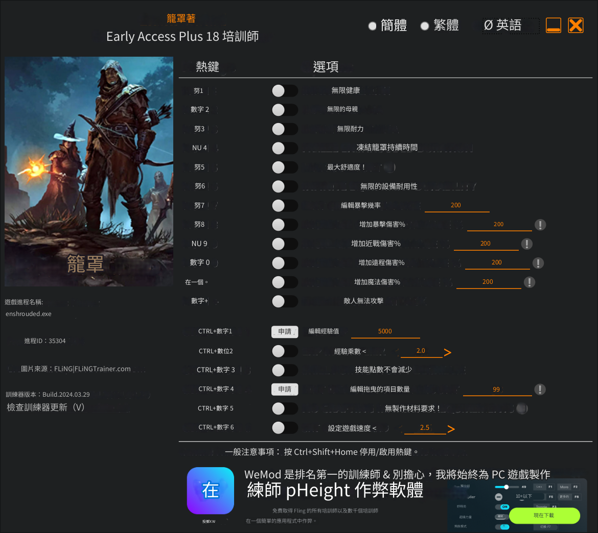 replyreload += ',' + 2343006;18 選項 · 遊戲版本:搶先體驗+ · 最後更新:2024.03.29 注意:僅限單人遊戲。 隱藏訓練師/作弊選項 數字 1 – 無限生命值 數字鍵 2 - 無限法力 數字鍵 3 - 無限耐力 數字鍵 4 -