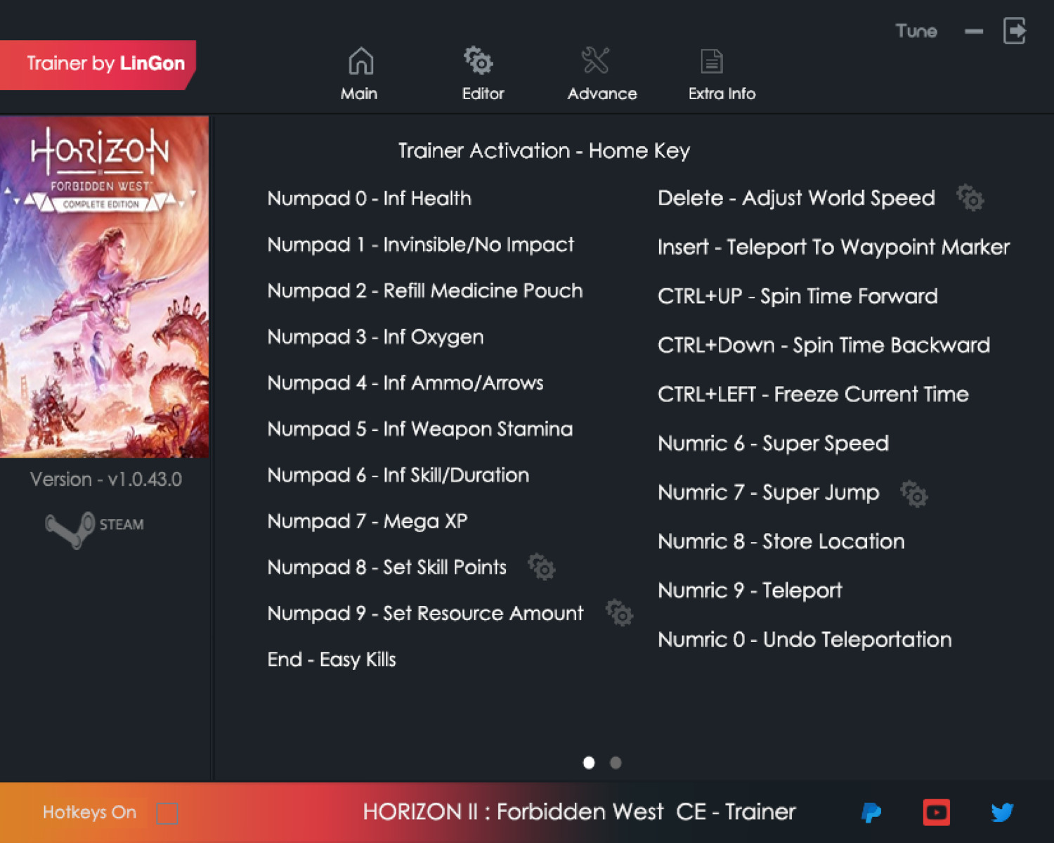 replyreload += ',' + 2343235;+20 V1.0.43.0 {LINGON} 使用 Home 鍵啟動此訓練器! 數字鍵 0 - Inf 生命值 - 始終保持玩家健康狀況良好 數字鍵 1 - 隱形/無影響 &nbs