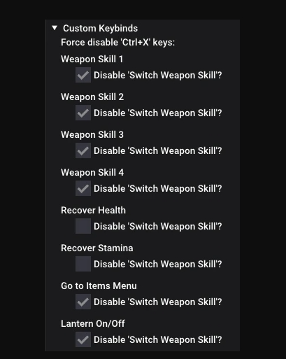 replyreload += ',' + 2343662;允許透過遊戲內 UI 將遊戲中存在的所有鍵綁定更改為任何鍵 (也允許透過 REframework UI 更改遊戲中存在的所有按鍵綁定) 可以透過 mod UI 從其他按鍵上刪除「切換武器技能」修飾符 去除