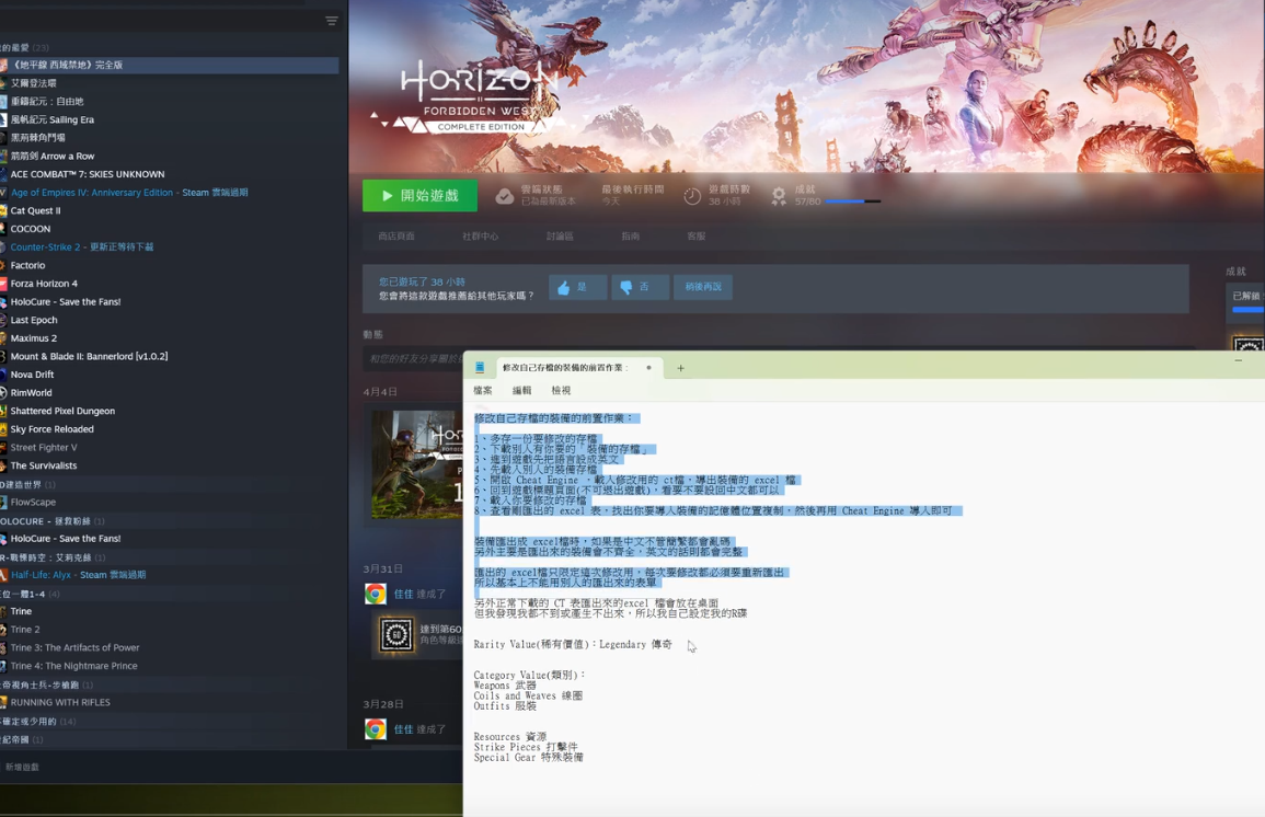 replyreload += ',' + 2343672; 修改自己存檔的裝備的前置作業: 1、多存一份要修改的存檔 2、下載別人有你要的「裝備的存檔」 3、進到遊戲先把語言設成英文 4、先載入別人的裝備存檔 5、開啟 Cheat Engine ,載入